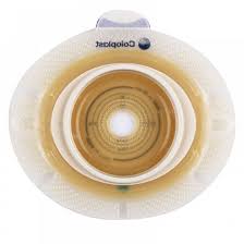A two-piece appliance for colostomy/ileostomy, with an audible click for extra reassurance.